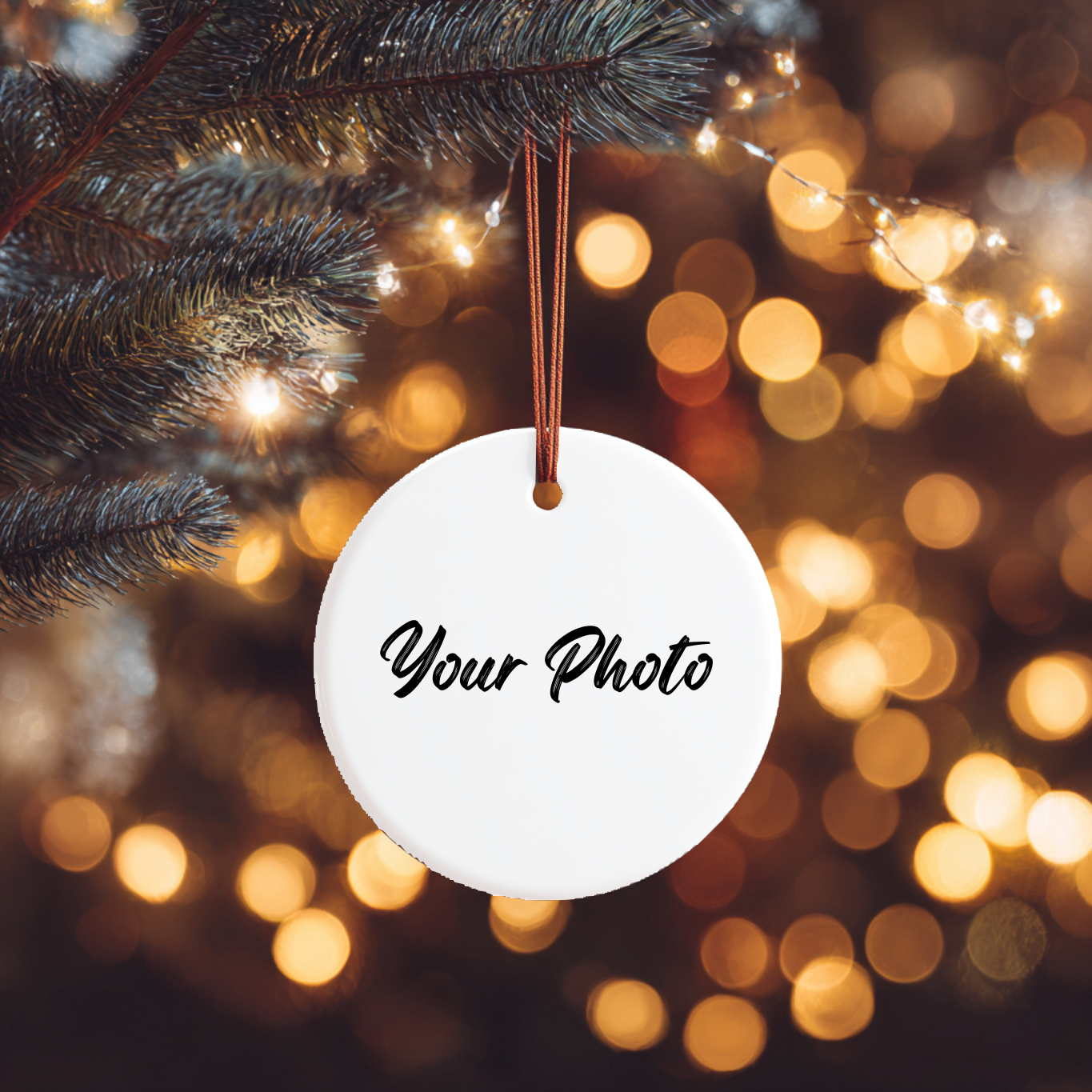 One side of the hanging ornament will feature the “First Christmas” design, and the other side can display a photo of your loved one