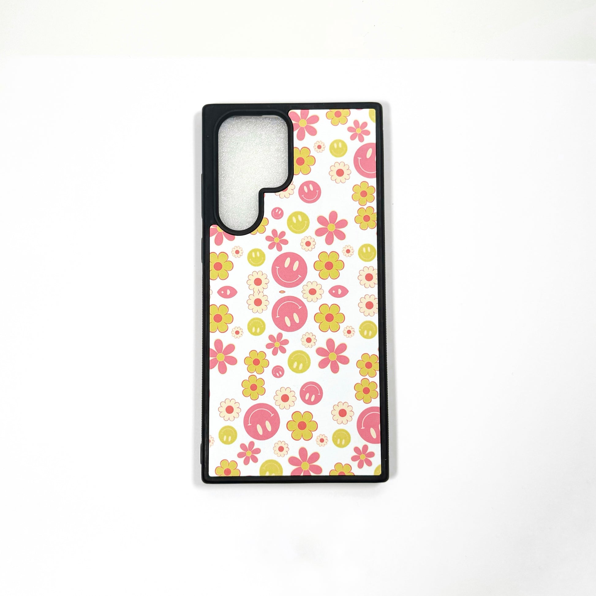Brighten up your phone with retro vibes! This playful case is covered in groovy smiley faces and cheerful flowers in shades of pink, yellow, and orange. Perfect for adding a dose of positivity and fun to your everyday style.