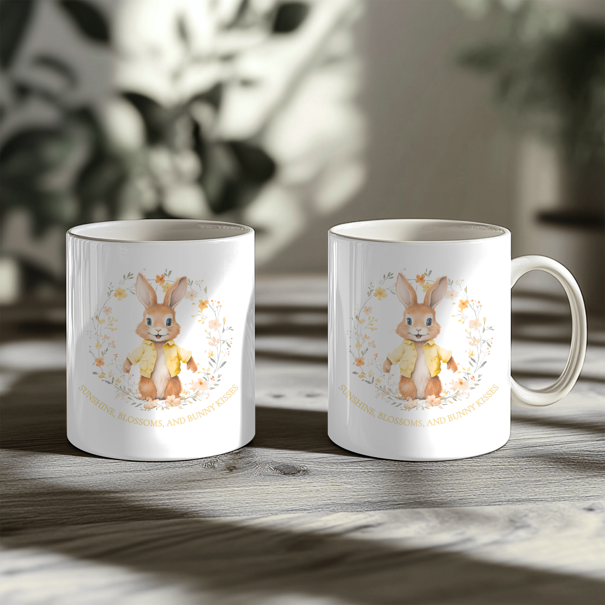 The gentle pastel tones and whimsical artwork make it a perfect addition to nurseries, living rooms, or seasonal décor. The heartfelt phrase “Sunshine, Blossoms, and Bunny Kisses” adds an extra layer of charm, making this mug a lovely reminder of life’s simple, happy moments.