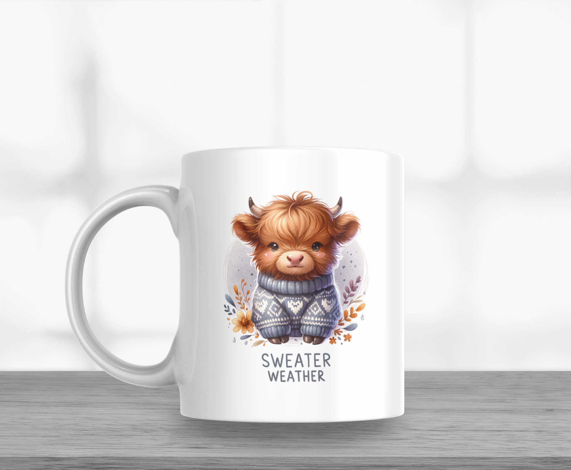 Bring some cozy fall vibes to your morning coffee with our Sweater Weather Highland Cow 11oz Mug. Featuring a cute autumn themed cow design, this mug will keep your coffee hot and your heart warm. Perfect for anyone who loves a touch of whimsy and warm drinks on chilly days!